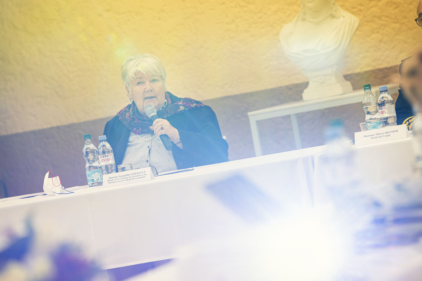 Deplacement de Jacqueline GOURAULT a Pezens dans l Aude, Ministre de la Cohesion des territoires et des Relations avec les collectivites territoriales, dans le cadre de l Agence Nationale de la Cohesion des Territoires.