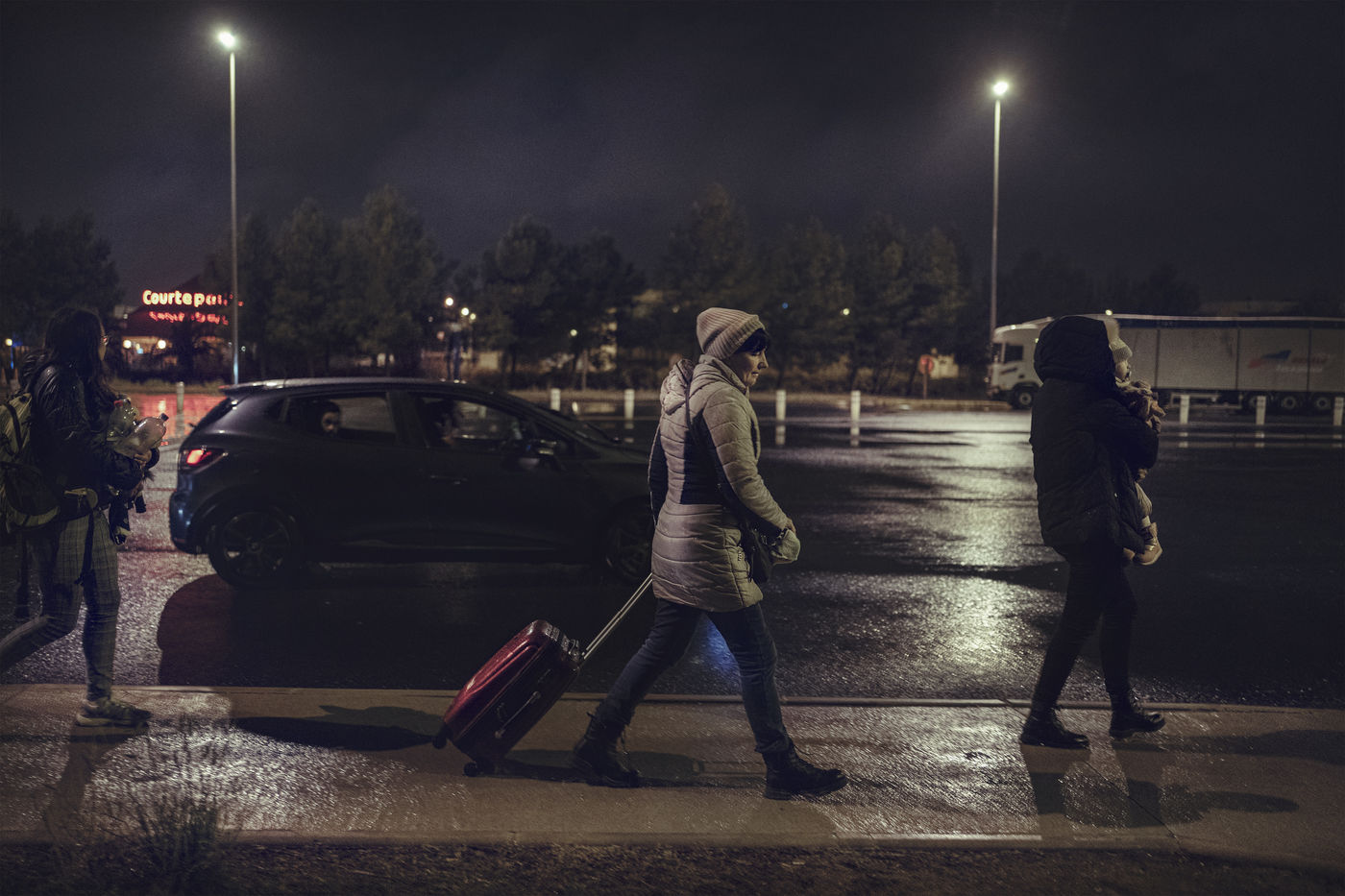 Il est 21h quand Aaron et Inna se garent en warning sur le parking à la sortie 37 de l'autoroute A9 à Narbonne. Les yeux rivés sur le téléphone ainsi que sur chaque véhicules qui arrivent au péage, ils attendent le fameux Renaud Traffic gris métallisé venant de Moldavie. A l'intérieur, Golnara, Ania et Mira, qui sont parties 5 jours plus tôt d'Ukraine pour fuire les bombardements Russe. Le voyage a été long.