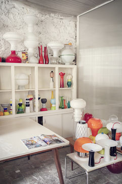 In the "Poisson Bleu" workshop of Claudio Isgro and Sylvie Romieu in Portel des Corbieres in Aude where they assemble Opalines to create new lights.