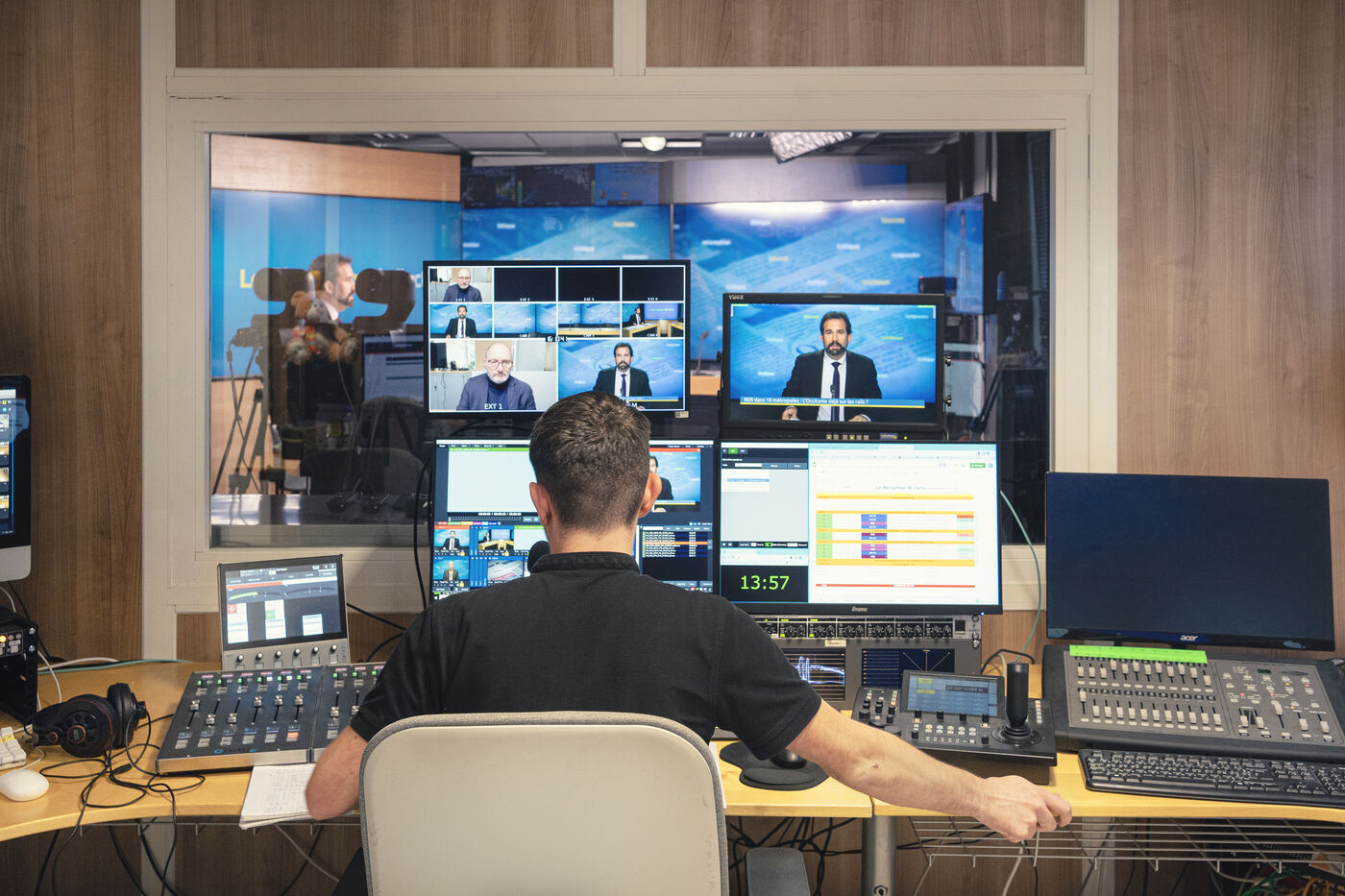 Dans le studio de la chaine de télévision Vià Occitanie à Gallargues dans l'Hérault.