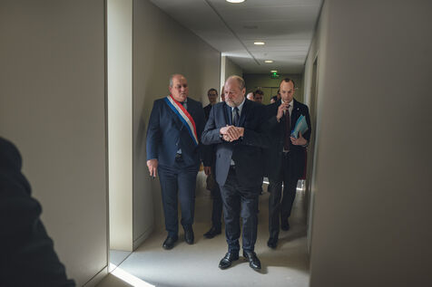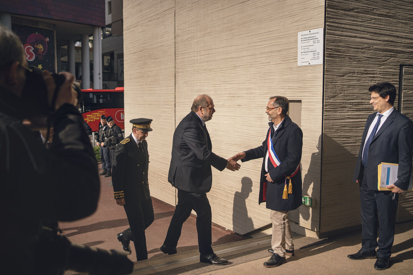 Eric Dupond-Moretti, garde des Sceaux, ministre de la Justice, en déplacement au Tribunal judiciare de Béziers dans l'Hérault.