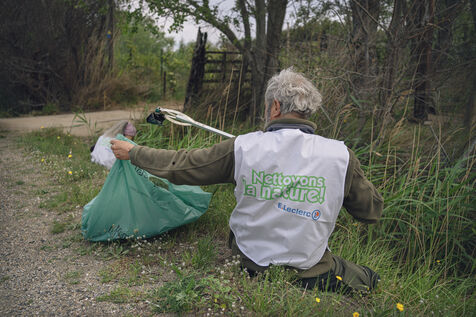 Cleaning operation by collecting waste on the side of the road by volunteers and the roads service on the D6009 departmental road in Fitou in Aude.