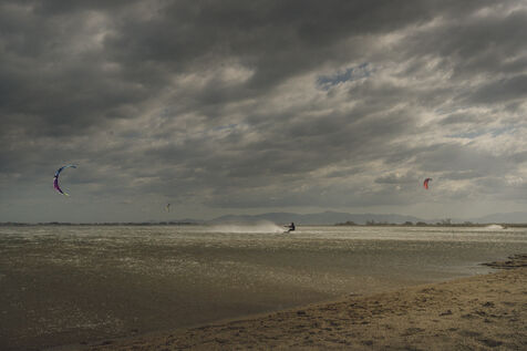 Des personnes font du kitesurf pendant la compétition Lords of Tram au Barcarès.