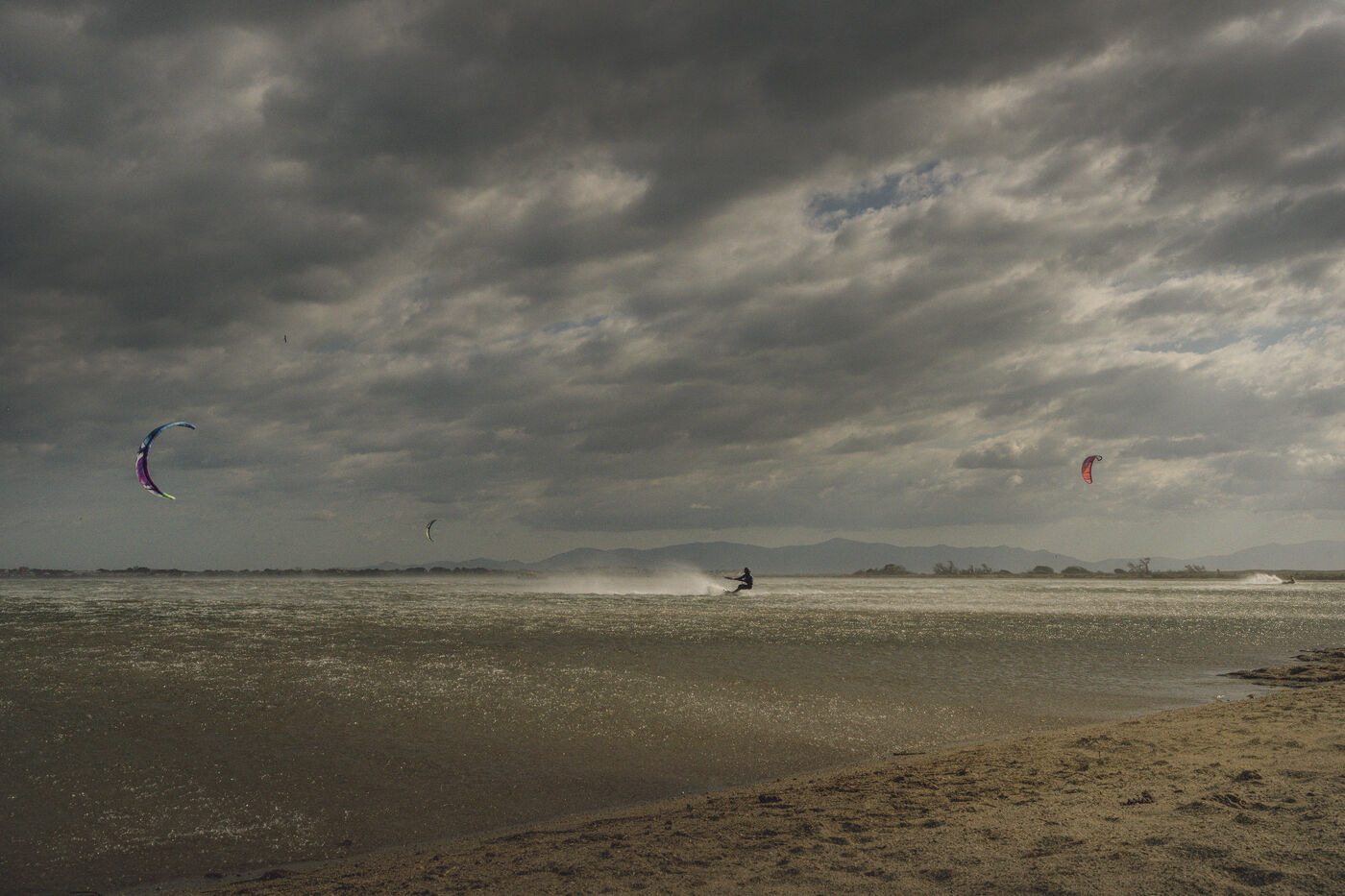People kitesurf during the Lords of Tram competition in Le Barcarès.