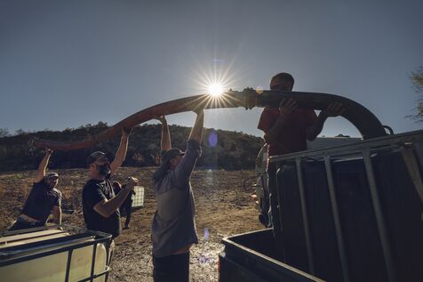While 2,500 partygoers stirred the ashes to staccato rhythms, on the other side of the hill, volunteers came to the aid of a farmer by watering the olive trees burned during the Corbières fire, which ravaged everything in its path across 17,000 hectares. The Beauregard Peasant Third Place has taken on the mission of helping farmers affected by the most significant fire in over 50 years. It receives, plans, and organizes projects throughout the region. On this project, it was necessary to find water on land where droughts accumulate over time. Then, it had to be transported to the village of Fontjoncouse, in an attempt to save the olive trees in this devastated valley.