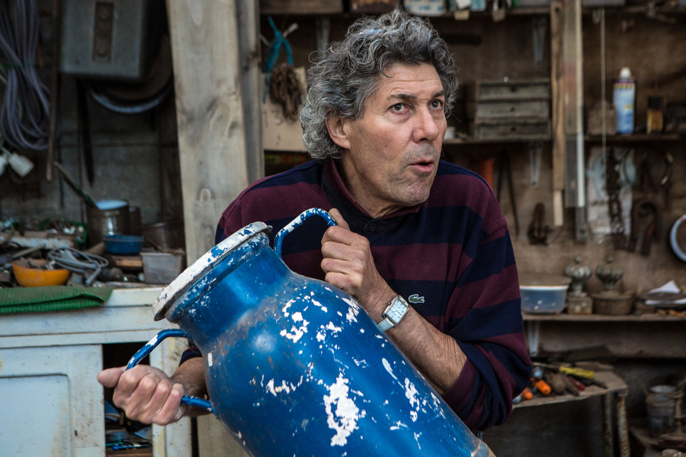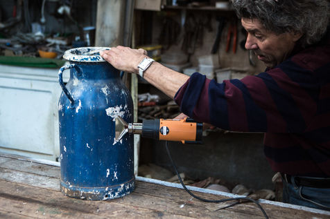 Alain holds a flea market located in Aigre, in Charente. He exhibits all kinds of objects and antiquities: bikes, furniture, trinkets, vinyls, old tools and old posters. He pick up abandoned objects that he finds or that people give to him. He restores them, repairs them, maintains them and gives them a new youth. His flea market is open every day except if he decides to go to make a spin with his companion in his truck .