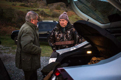 Chaque année, au mois d'octobre, un groupe de chasseurs se retrouve à l'hotel Les sources de la Nive à Esterencuby, dans le pays basque, pour une semaine de chasse à la palombe.