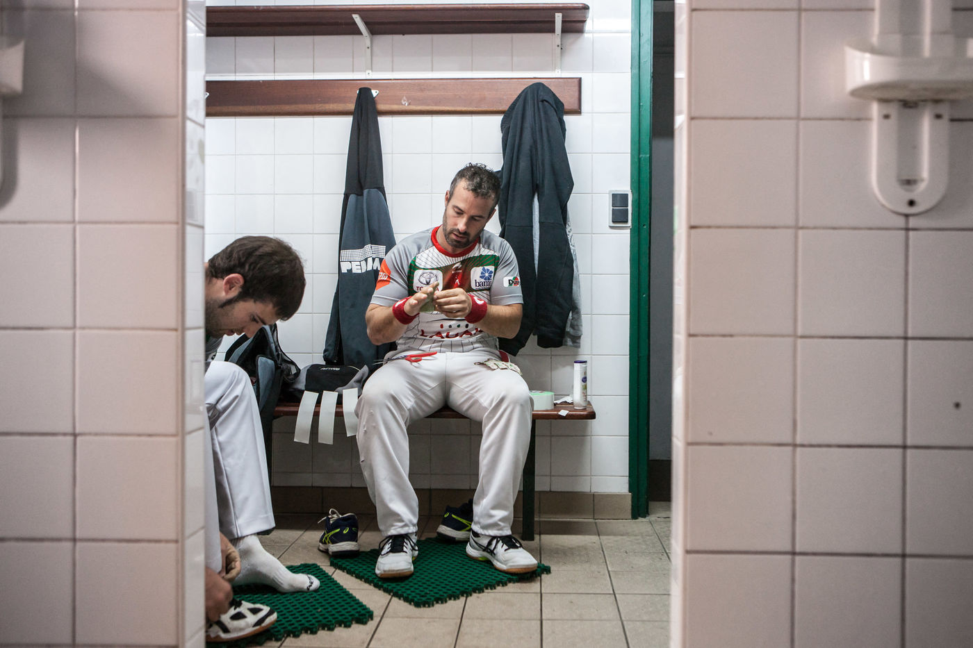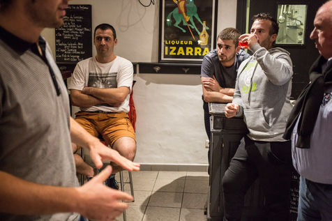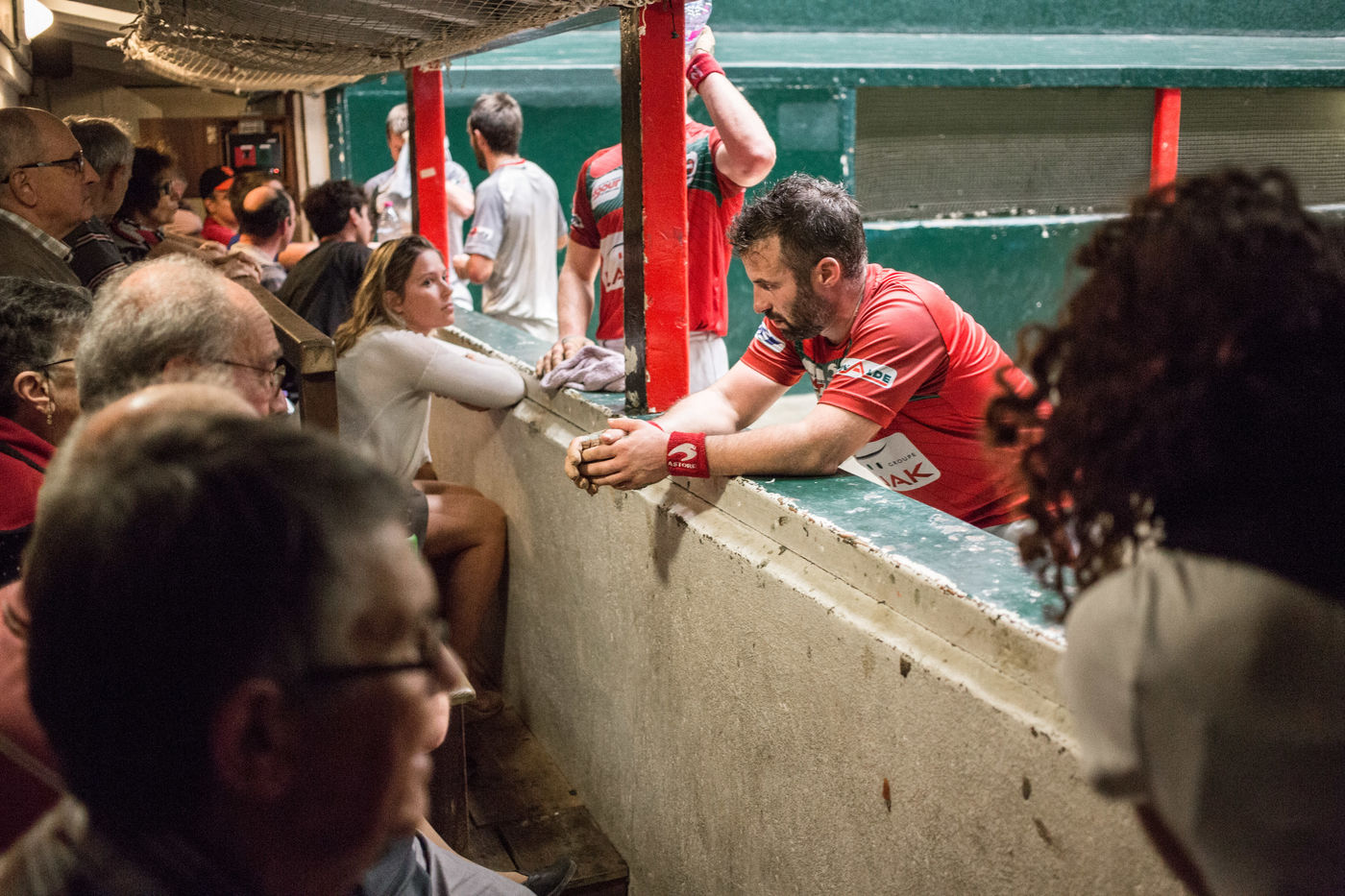Il est bon, il gagne les compétitions, on le connaît bien dans le coin, il est vraiment sympa Jean-Philippe. Ses mains qu'il protège soigneusement dans les vestiaires, on préfère les voir jouer à la pelote que se les prendre en pleine poire. Le match commence, c'est le moment où les hommes du coin se retrouvent. On ne rigole pas, on pourrait penser que des paris sont en cours, mais ça, dans les trinquets, ça ne se fait surtout pas.
