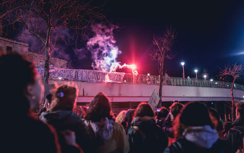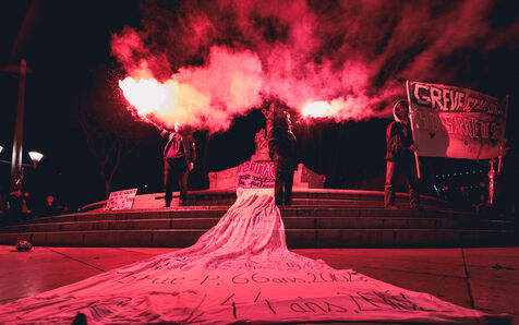 The demonstration highlights struggles for gender equality and women's rights and responds to a national call for a feminist strike to denounce gender based violence and pay inequalities.