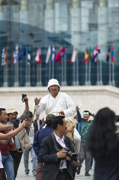 De leur côté, les citadins d'Oulan-Bator en voyage d'agrément dans le pays aiment se faire prendre en photo dans des vêtements traditionnels pour renouer avec le passé.