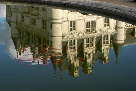 Les photos présentes un point de vue du château inhabituel notamment en reflet dans le bassin.