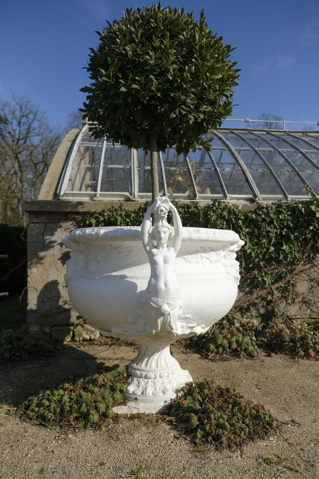 Views of the Chenonceau Castel, Château de la Loire sur le Cher, its garden and park in winter.