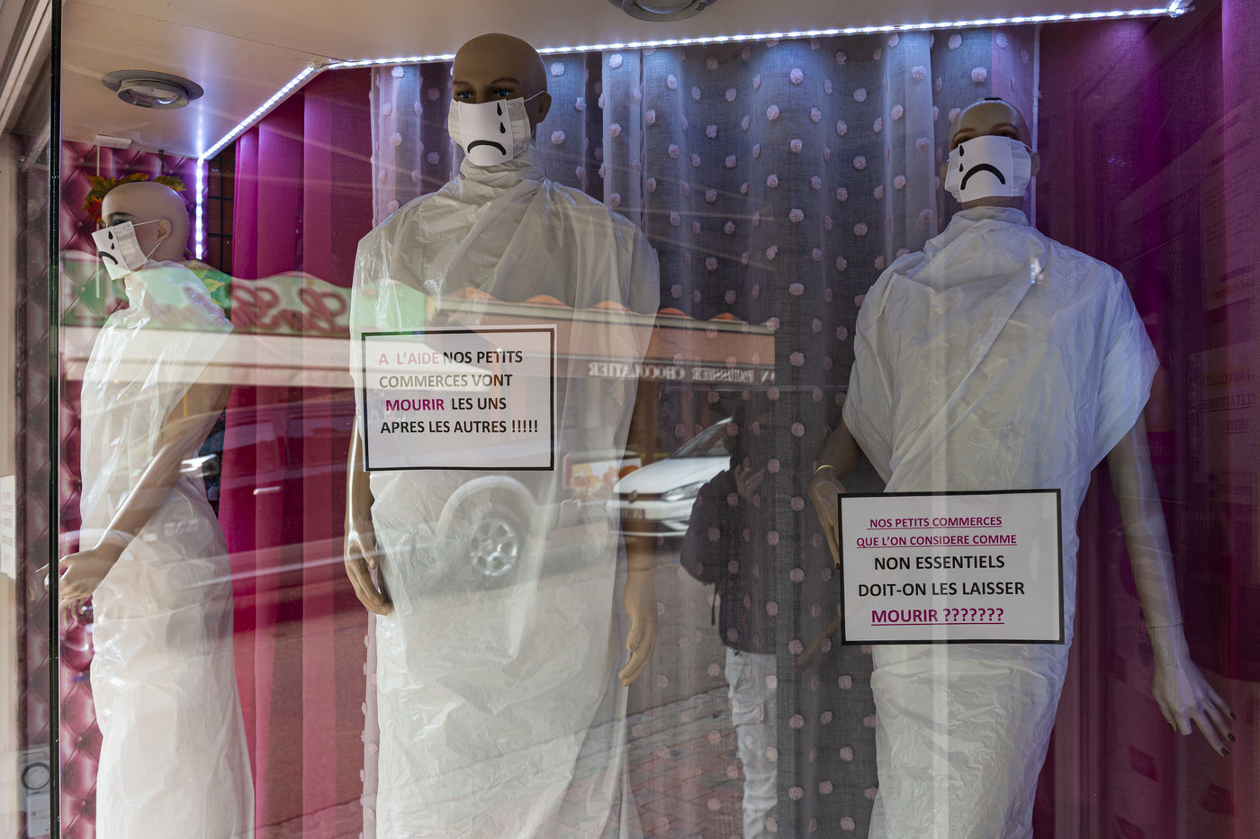 COVID 19: In Toucy, a small town in the Yonne, merchants with businesses considered "non-essential" in the context of the health crisis decided to carry out a "ghost trade" operation to alert them to their situation. White sheets and desperate messages have replaced the shop windows. The French government's decision to postpone "Black Friday" is far from satisfying these merchants who did not take off. Some of them will have to close down, which would be a disaster for this city located in the "diagonal of the void".