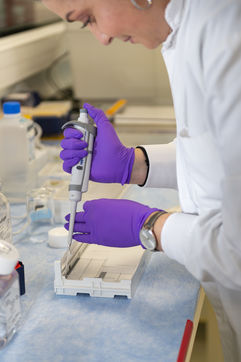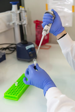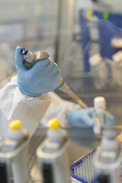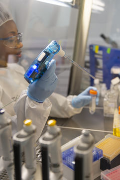 Illustration de gestes dans un laboratoire de recherche pharmaceutique et médicale.