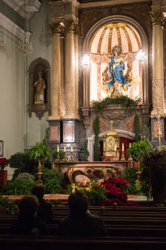 Older peoples pray in the pews of the Assumption Church in Denia, 30 december 2019.