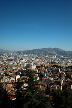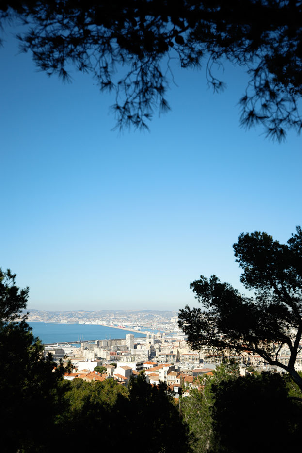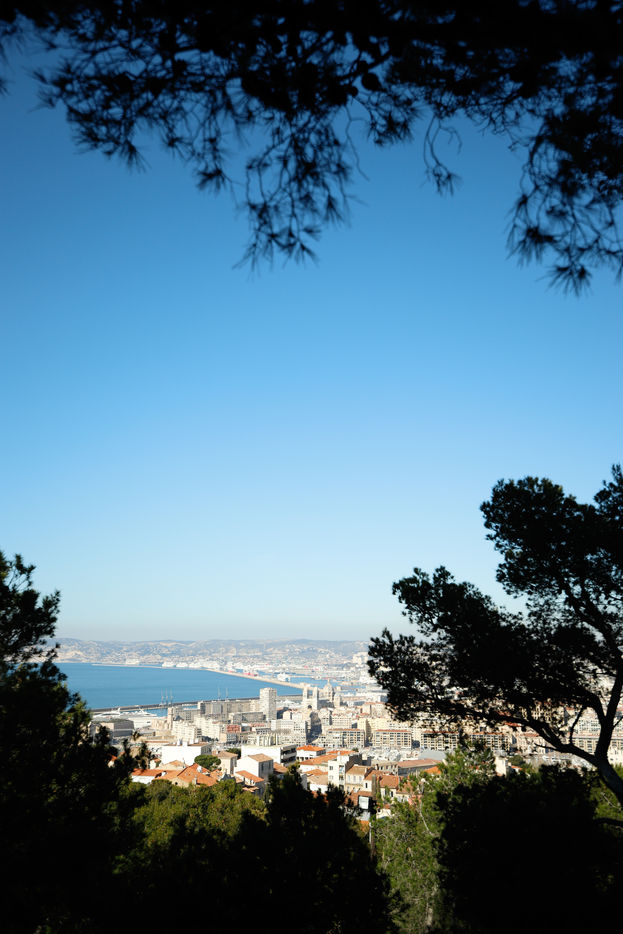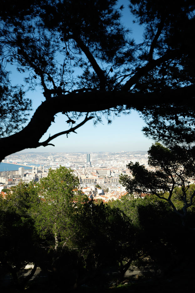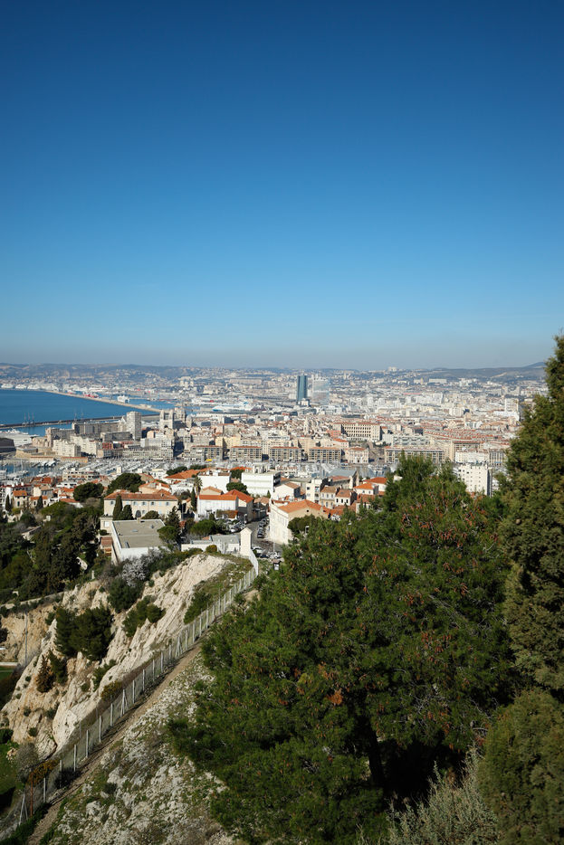 France, Marseille, 2022-12-01. Une vue panoramique sur Marseille depuis la basilique Notre-Dame de la Garde. Photographie par Iselyne Perez-Kovacs / Hans Lucas.