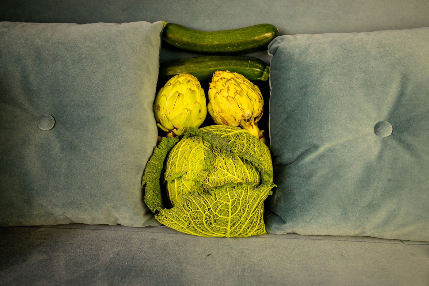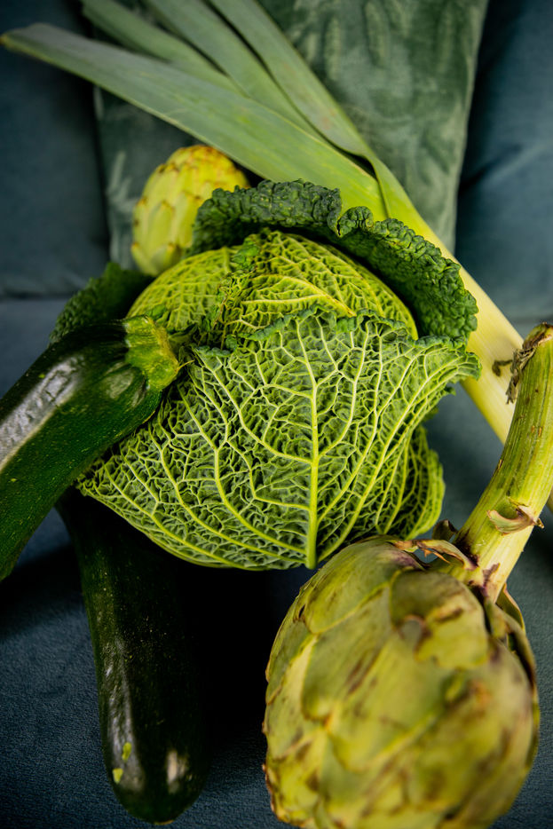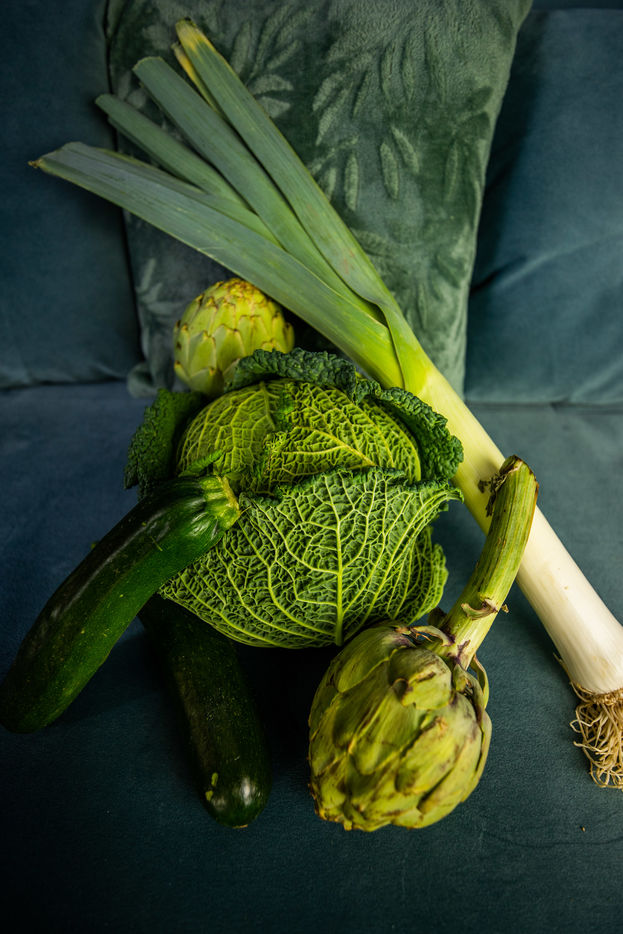 France, Montpellier, 2022-02-03. Green vegetables illustrations. Photography by Iselyne Perez-Kovacs / Hans Lucas.