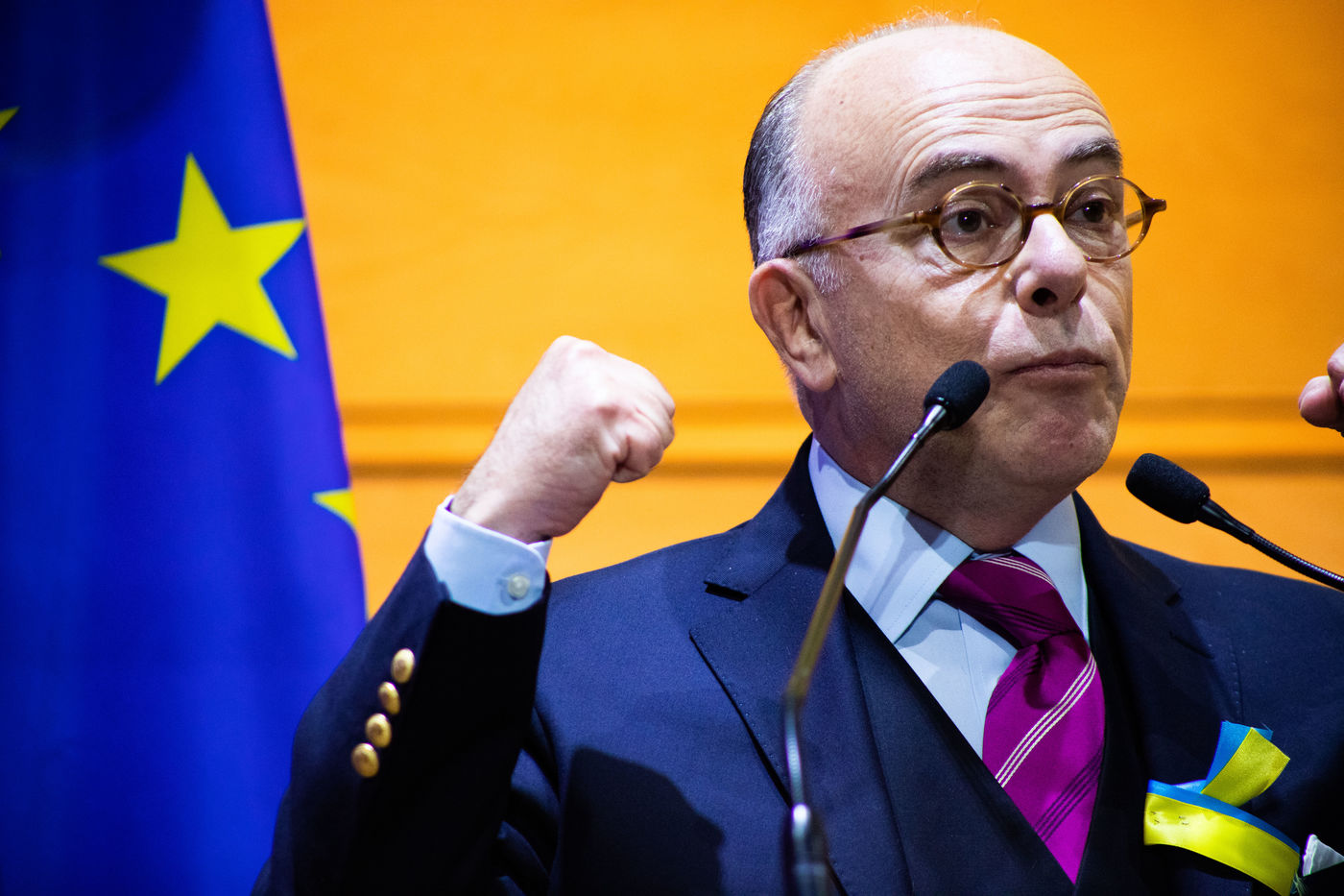 France, Montpellier, 2022-03-02. Bernard Cazeneuve speaks in the Hidalgo's meeting as part of the 2022 presidential elections in France. Photography by Iselyne Perez-Kovacs / Hans Lucas.