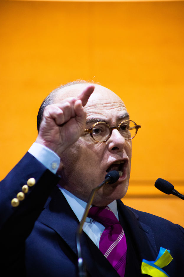 France, Montpellier, 2022-03-02. Bernard Cazeneuve parle au meeting d'Anne Hidalgo dans le cadre des elections presidentielles 2022 en France. Photographie par Iselyne Perez-Kovacs / Hans Lucas.