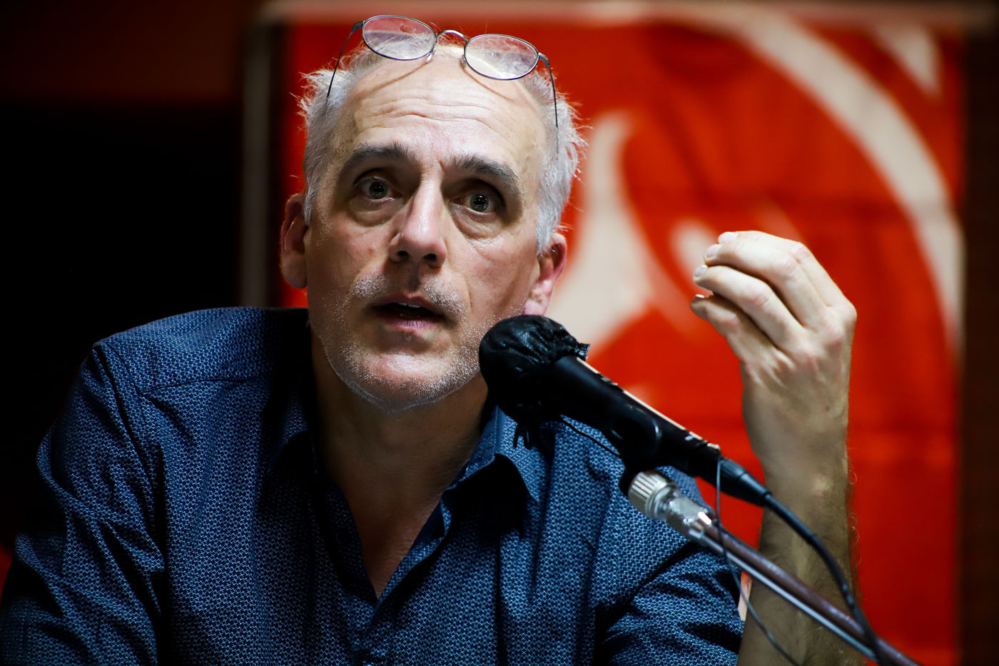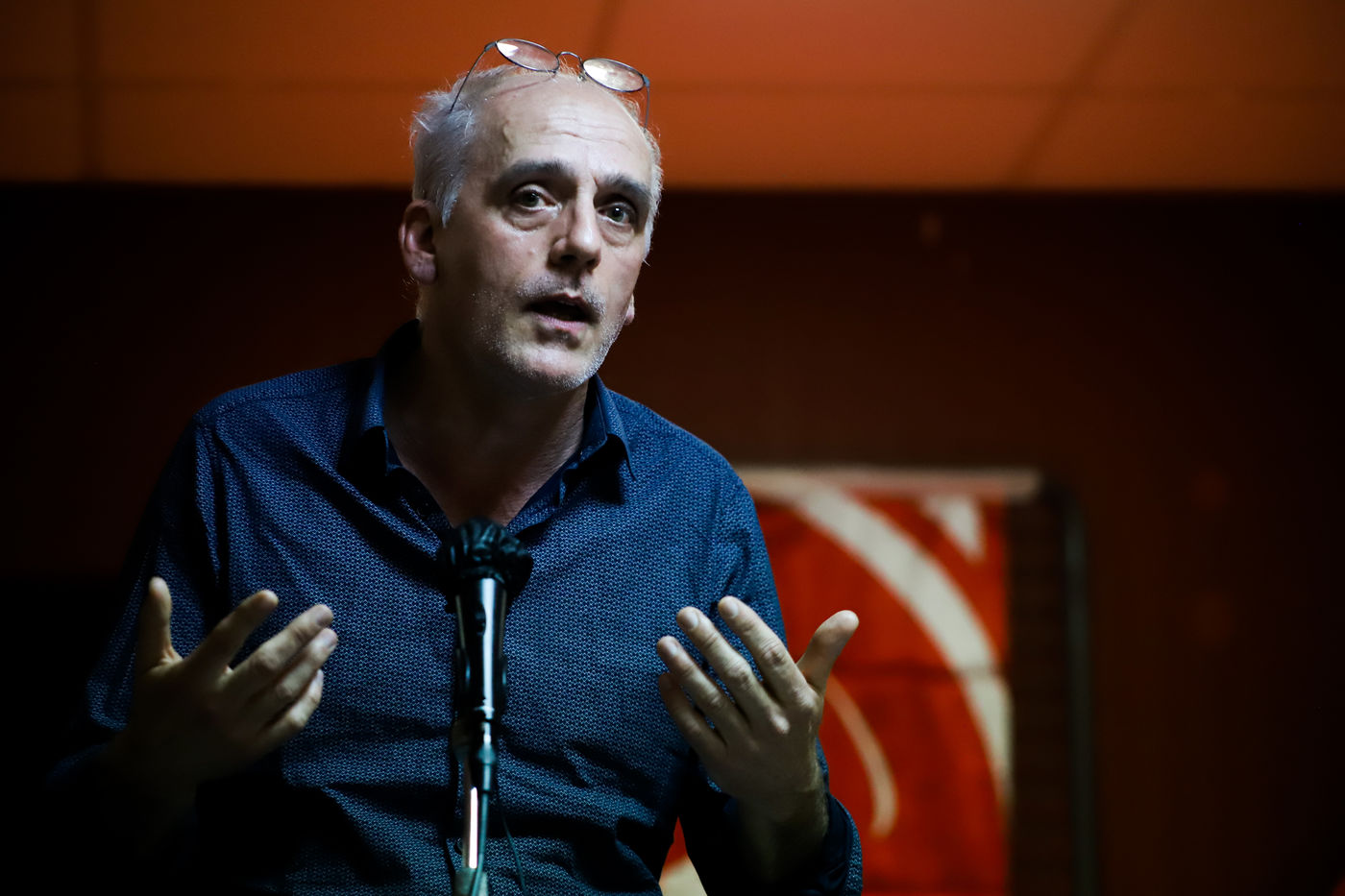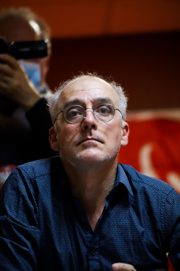 France, Montpellier, 2022-03-11. Philippe Poutou held a meeting as part of the 2022 presidential elections in France. Photography by Iselyne Perez-Kovacs / Hans Lucas.