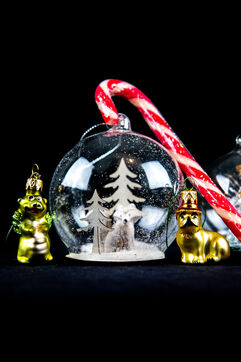 France, Montpellier, 2022-12-19. Illustration de boules de Noel. Photographie par Iselyne Perez-Kovacs / Hans Lucas.
