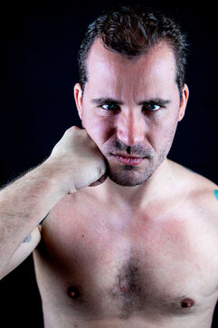 France, Montpellier, 2022-12-21. Portrait of Drix (Cédric Ramadier), wrestler. Photography by Iselyne Perez-Kovacs / Hans Lucas.