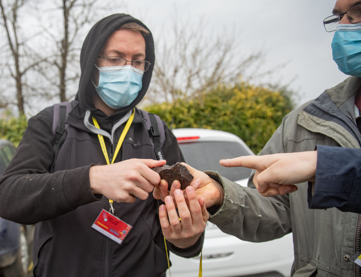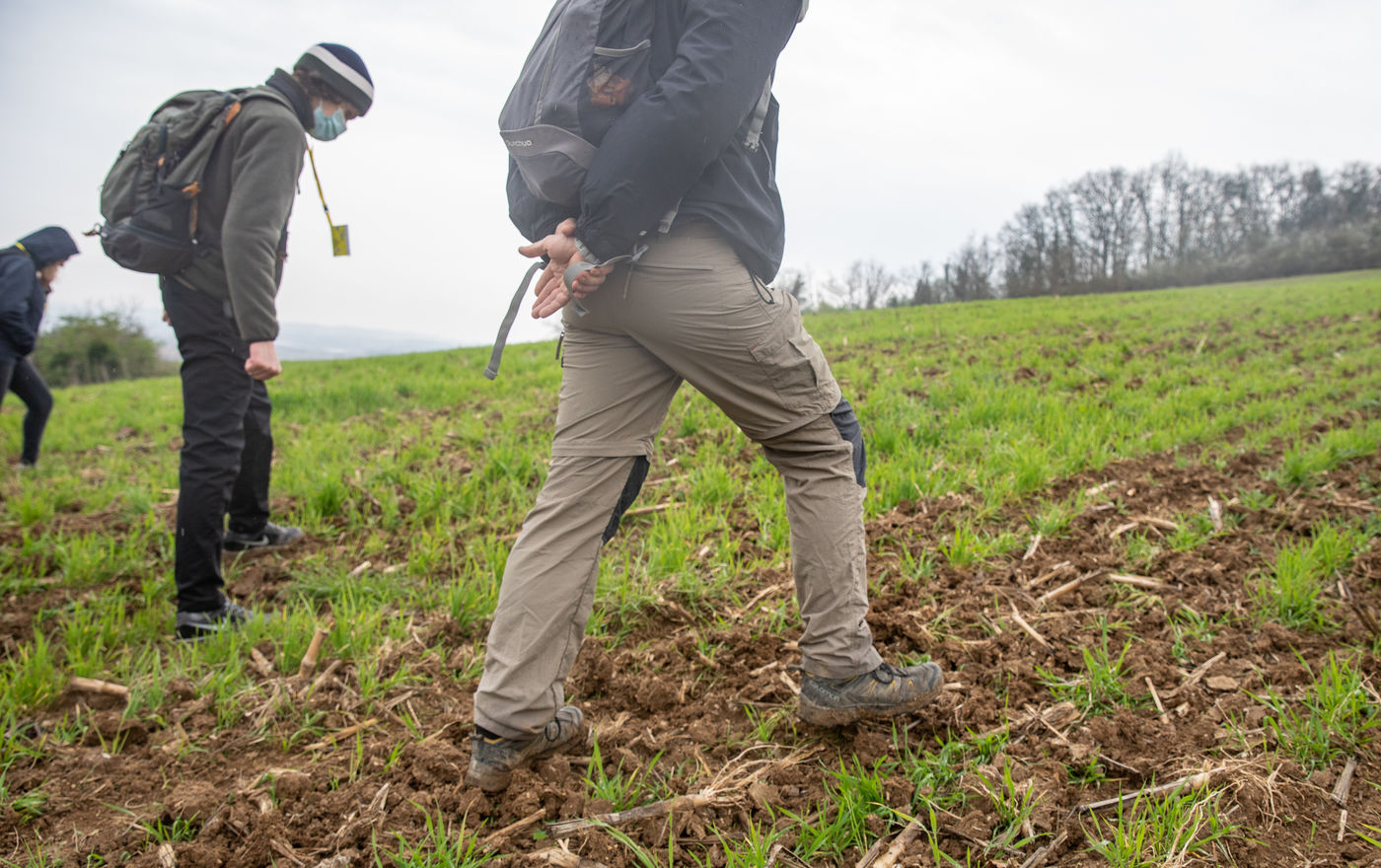 Nous étions un bon groupe de bénévoles avec plusieurs médiateurs de la Ferme aux étoiles dont Mickaël Wilmart et Thomas Benech. Ils ont commencé par une médiation en nous montrant aussi des météorites qu'ils ont apportées. Afin de respecter les lieux et les mesures sanitaires, les lieux précis de la battue ont été tenus secrets jusqu'au dernier moment. En ligne comme des enquêteurs, nous avons parcouru plusieurs champs. Nous avons vu des pierres noires mais pas la fameuse météorite. BFM TV était aussi là pour se documenter et interviewer plusieurs personnes.