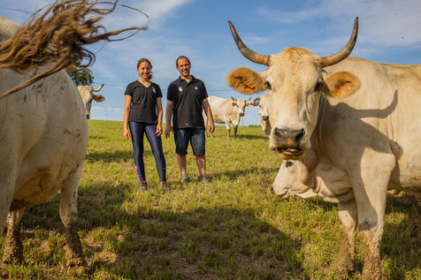 Indeed, it is a cow adapted to the hillsides of the Gers. Originally it was a working breed, used for traction in the fields because it is very robust with a great resistance to heat. Thanks to its hardiness, it is mainly raised in pastures. It is satisfied with the grass of the Gers hillsides, which corresponds to a guarantee of quality, an agro-ecological reality and a search for sustainability, in particular by a reduced carbon footprint (contrary to the fattening channels based on cereals). Its meat is of interest to the gastronomic catering industry because it is very tasty and has a flavor specific to naturally fed animals, which is a guarantee of quality. It is also precious for the maintenance of the hillsides of the Gers which are very hilly and thus impassable for tractors.