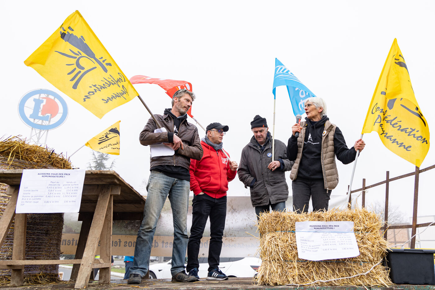 In the absence of a response to farmers' incomes, the confédération paysanne is calling for mobilization to continue, despite the call from Fnsea and Jeunes Agriculteurs to lift blockades following new government measures in response to the agricultural crisis. Their demands include the need for a decent income with remunerative prices, an immediate halt to free-trade negotiations, alignment with European and national standards for all imported products, CAP reform favoring assets over the race for hectares, substantial aid for organic farming and its maintenance instead of pseudo-greening, among others. They express their desire to defend food sovereignty by calling for a real budget commensurate with an ambitious agricultural policy that will enable a large number of livable farms to be set up, and create jobs in rural areas.