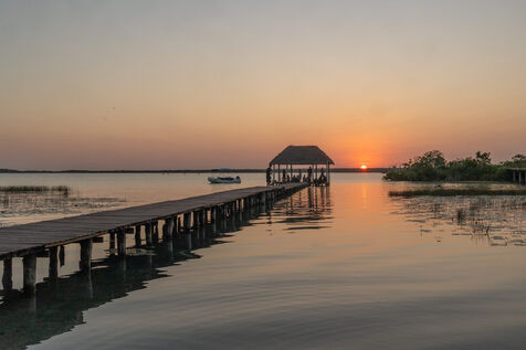 Bacalar is located in the south of the Yucatan peninsula and is renowned as a unique paradise. Its lagoon, just 4 kilometres wide and 42 kilometres long, offers a palette of seven shades of blue. The variations of blues and greens in this crystal-clear water depend on the depth of the lagoon and the intensity of the light. Despite the growing number of buildings, Bacalar remains a small paradise untouched by mass tourism. Its lagoon, which is a nature reserve, is home to a diversity of species including turtles, crocodiles and a variety of birds. Visitors can admire the sunrise from the pontoon.