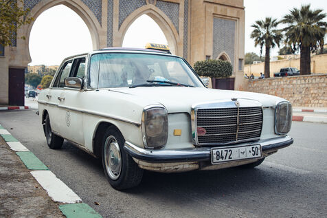 To visit Fez in comfort, I hired a taxi with a driver, but not the first driver that came along. A driver with his old Mercedes, which looked as old as he was. Both looked as if they'd come from a bygone era. He didn't speak French, let alone English, and you only knew a few words of Arabic. You can always communicate with a bit of everything. By the end of our trip to Fez, we knew Mohamed a little better. This 75-year-old man is still working, because he won't have a pension. His three grown-up children are still at home, as they can't find work after studying biology and IT. Mohamed has to keep working to feed his family. The family is sacred in Morocco, it's the foundation. They help each other out, as they have no social assistance like in France.