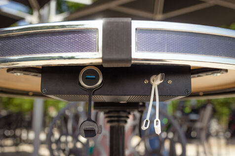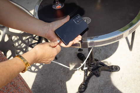 Une table bistrot connectée pour recharger les portables.
