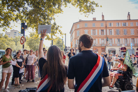 Activists, zadists and MPs took the floor to demonstrate the abuse of power, the dangers and the violence of the forces of law and order against people opposed to the illegal tree-cutting of the A69 motorway project in front of the courthouse as a strong symbol in Toulouse on 31 August 2024.