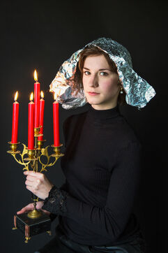Red candles on a candelabra reminded us that nothing is ever truly won.