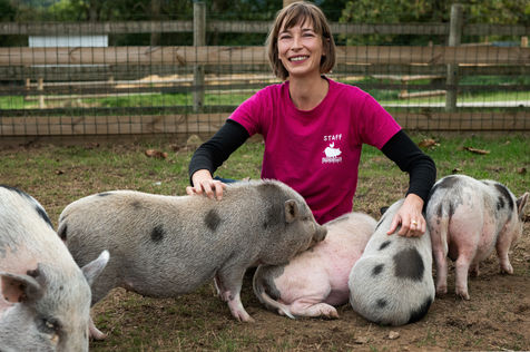 Le refuge permet au grand public de rencontrer souvent pour la premiere fois un animal d elevage. Ainsi, des personnes decouvrent par exemple qu un cochon adulte est plus grand qu un poney ! Elles le voit evoluer libre et heureux et jouer avec ses copains. Le tout en sachant qu il ne finira jamais a l abattoir.