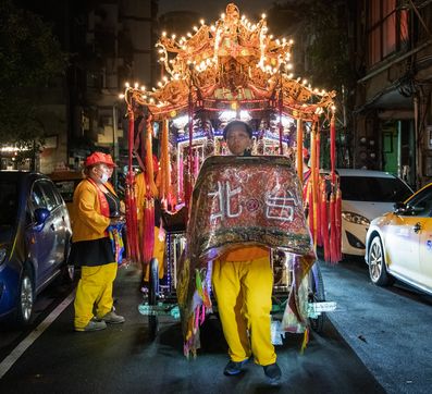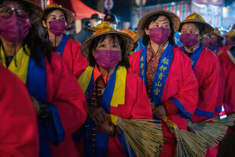 King Qinshan is one of the biggest Taiwanese Taoist festivals. It occured this weekend, far from any concern related to the Covid which was held there in an exemplary way. It is also called the "Great Ritual Festival of King Qingshan", in Taipei. King Shangong's palace is a magical temple dedicated to the main deity, "King Qinshan", the god who eliminates plagues and disasters for the people. Legend has it that King Qinshan sent his generals on a night journey to inspect the place, reward good deeds and punish evil, and catch the spirits that make people suffer to purify them. In ancient times, the atmosphere of the wandering was solemn and calm, and people walked quietly at night to minimize noise and clamor. Nowadays, the unexpected visits have gradually become more lively, reaching a climax this year with more fireworks and firecrackers than ever before.