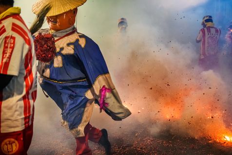 King Qinshan est l un des plus grands festivals taoistes taiwanais, qui s est tenu ce week-end, loin de toute preoccupation liee a la Covid qui y a ete jugulee de maniere exemplaire. Il s agit du " grand festival rituel du roi Qingshan ", a Taipei. Le palais du roi Shangong est un temple magique dedie a la principale divinite, le " Roi Qinshan ", le dieu qui elimine les fleaux et les catastrophes pour le peuple. La legende veut que le Roi Qinshan envoie ses generaux en voyage nocturne pour inspecter les lieux, recompenser les bonnes actions et punir le mal, et attraper les esprits qui font souffrir le peuple pour les purifier. Autrefois, l atmosphere de la deambulation etait solennelle et calme, et les gens marchaient tranquillement la nuit pour minimiser le bruit et la clameur. De nos jours, les visites inopinees sont progressivement devenues plus vivantes, jusqu a atteindre leur paroxysme cette annee avec plus de feux d artifices et de petards que jamais.