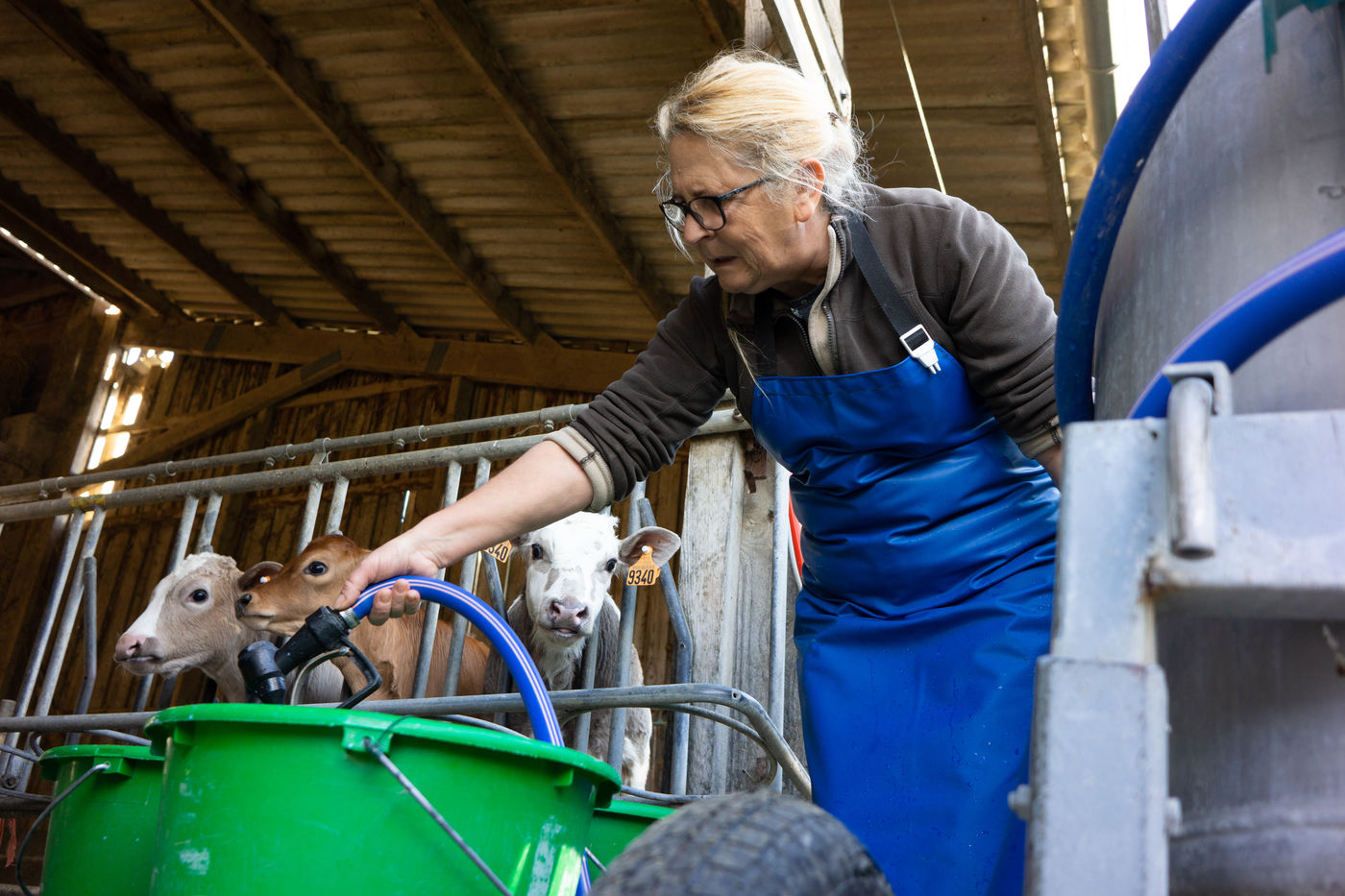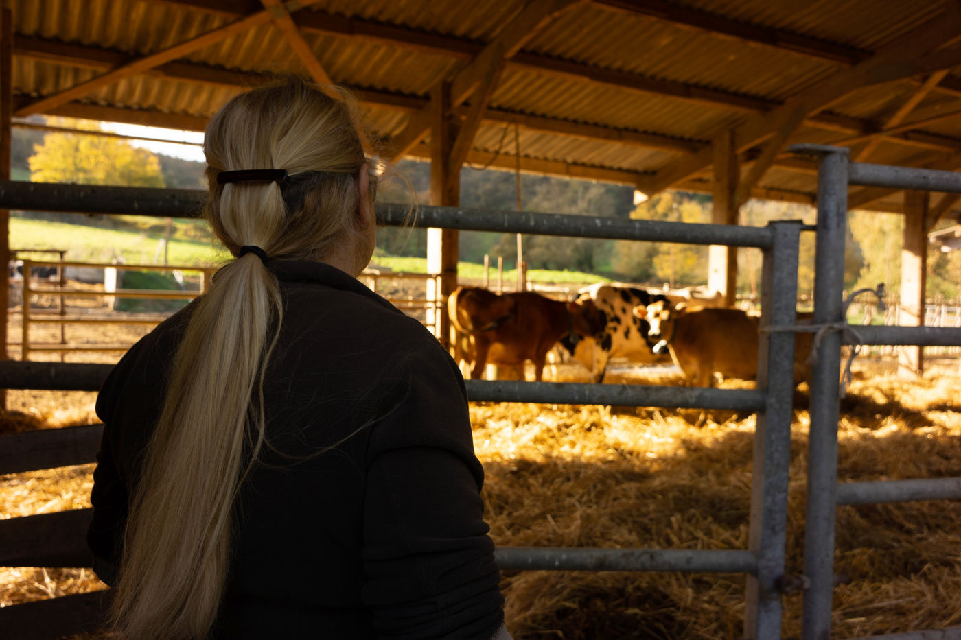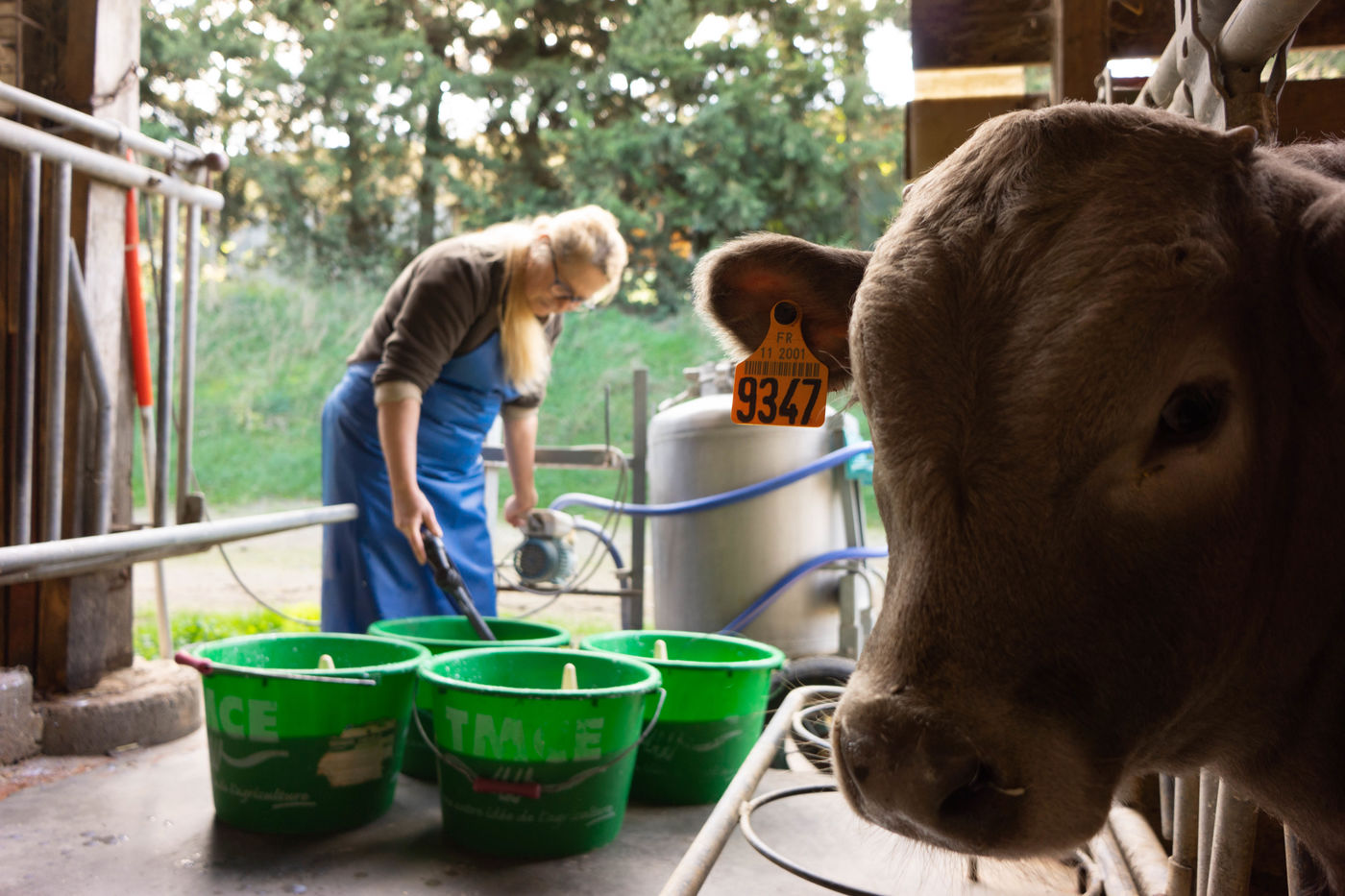Frédérique Bromet est une éleveuse de vaches laitieres installée en GAEC familial en agriculture biologique. La Ferme du Barsa se trouve à Cazalrenoux, un petit village de la Piège dans le Lauragais Audois (Occitanie). Les vaches, pour la plupart de race Prim'holstein, peuvent se rendre au poste de traite à leur guise. Les veaux quant à eux, sont nourris au biberon par Frédérique.