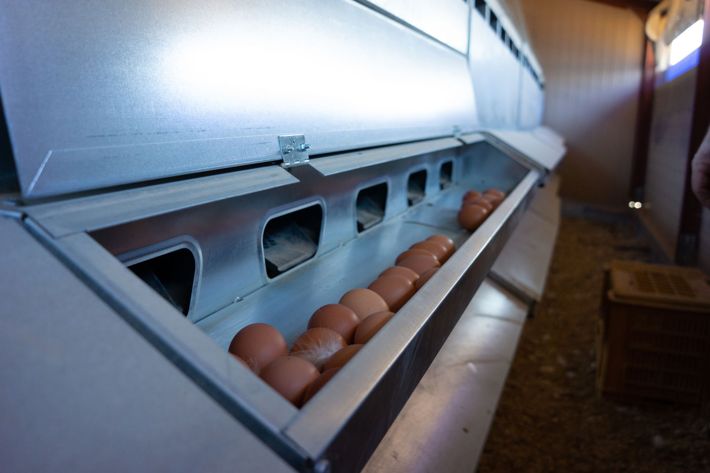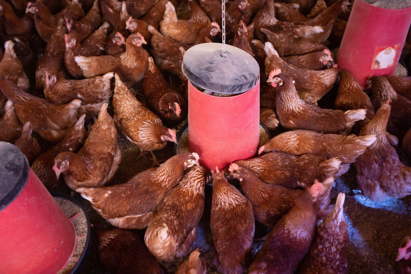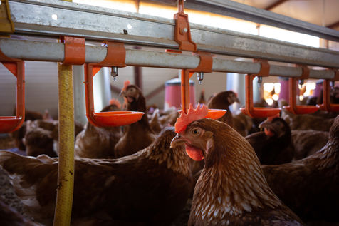 À Argeliers dans le sud de la France (Aude), des centaines de poules pondeuses élevées en plein air profitent de l'ombre de panneaux solaires photovoltaïques. De plus en plus d'exploitations agricoles françaises se tournent vers ce qu'on appelle "l'agrivoltaïsme".