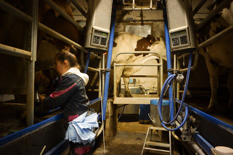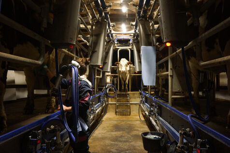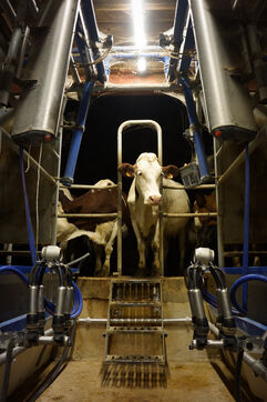Milking time on an organic dairy farm