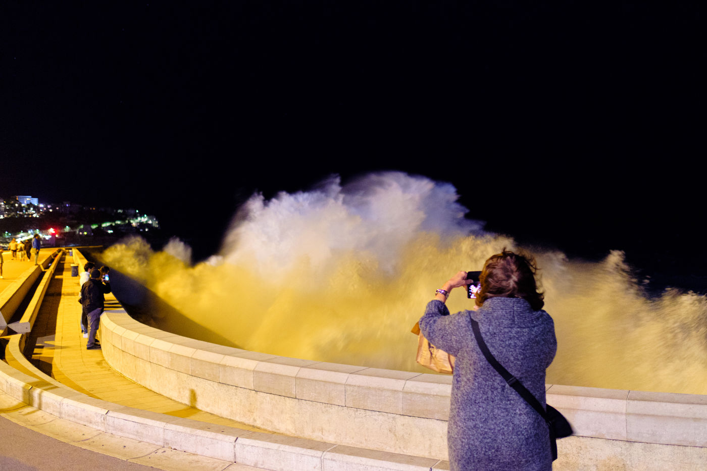 On the evening of December 22, 2019, I went for a walk on the Promenade des Anglais. The violent winds of the Fabien storm caused impressive waves. Many onlookers immortalize this quite impressive spectacle of nature.