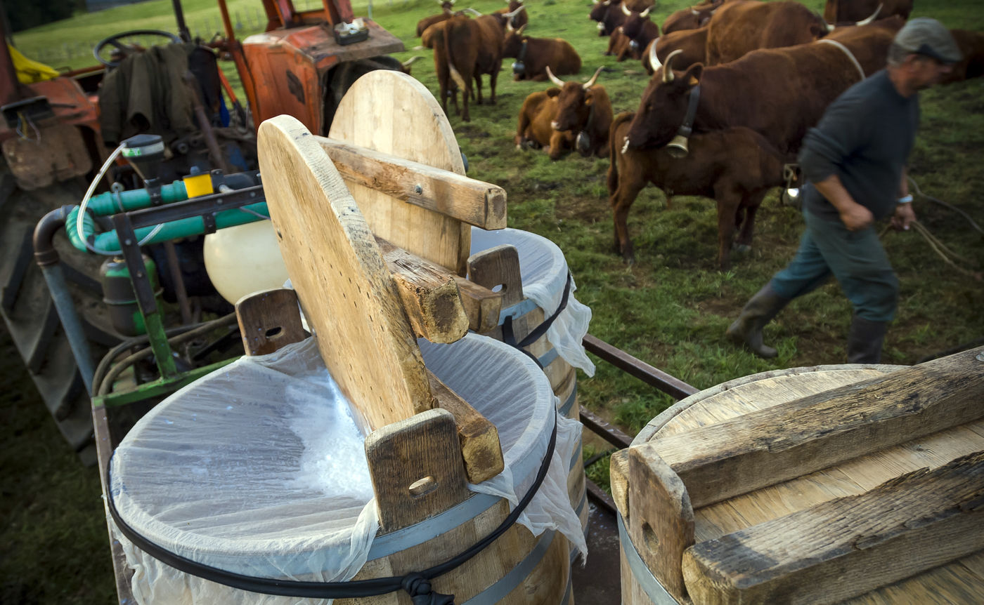 Pour sa fabrication il faut avant tout dompter cette vache rustique et caractérielle qui ne donne du lait qu'en présence de son veau.