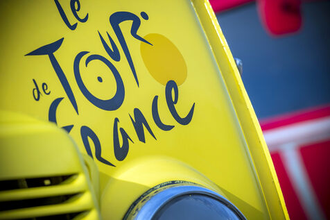 Old advertising cars of the Tour de France caravan.