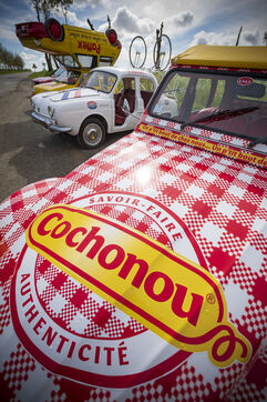 Unique collection of Tour de France advertising cars belonging to the BLANLEIL family.