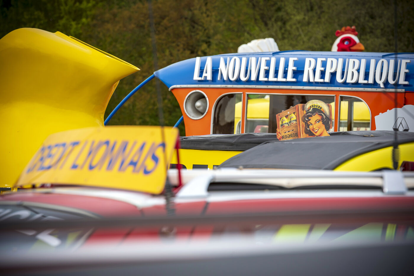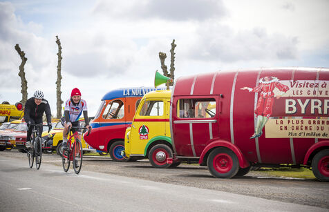 Anciennes voitures publicitaires de la caravane du Tour de France.