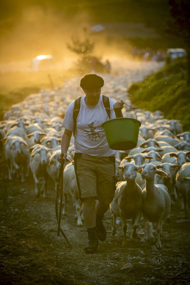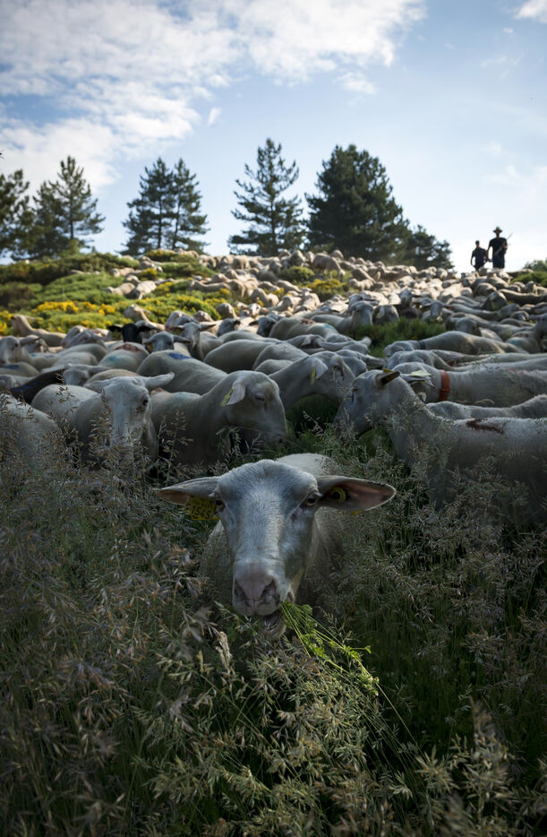 A flock of 2,900 BMC sheeps, a breed endemic to the Massif Central, goes up to summer pasture.