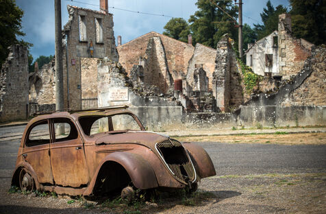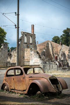 Anniversaire des 80 ans du massacre d'Oradour sur Glane perpétré le 10 juin 1944 par la division Das Reich. Le temps s'est arrété sur les ruines du village martyr du plus grand massacre de civils commis en France par les nazis, 642 victimes.
