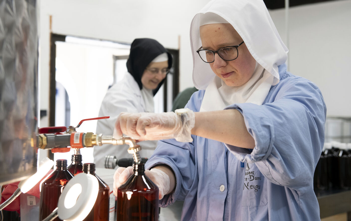 Cistercian abbey of Notre Dame des Neiges in the Ardèche mountains. The nuns welcome hikers on the Stevenson and Regordane trails, and also make household products.