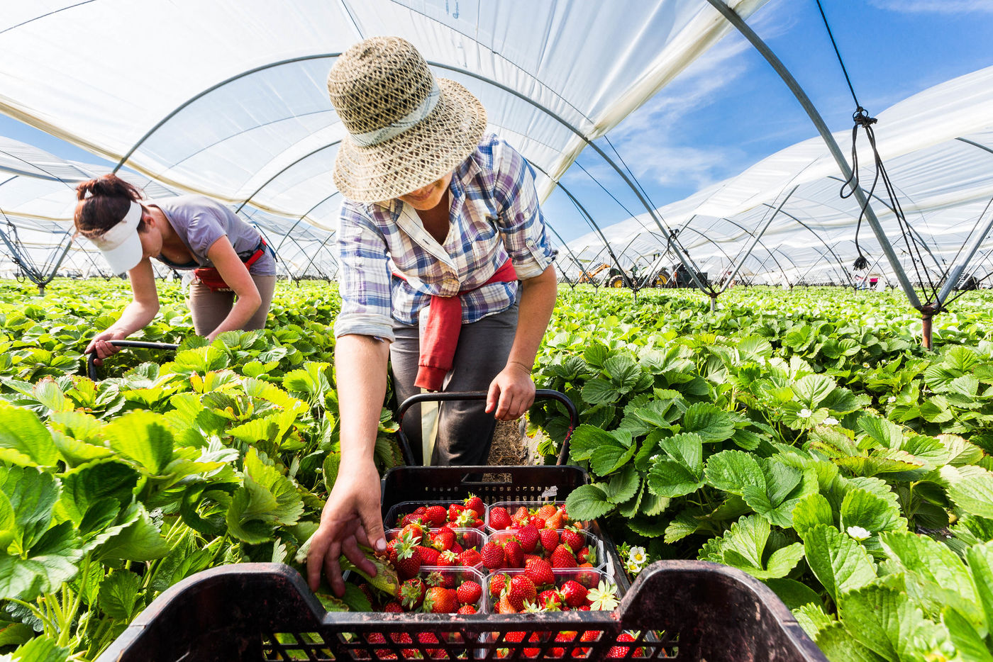 Every year, 300,000 tons of strawberries are produced there, mainly Camorosa plants, a variety created in a laboratory in California. Planted in November, Huelva farmers harvest strawberries continuously for 4 to 6 months, from January to June. In order to harvest their fruit, the Andalusian producers call upon nearly 100,000 seasonal workers, mostly women, mostly from Eastern Europe and the Maghreb, every year. By day under the hot Andalusian sun or by night, their workers work for 37€/day, 7 days/week for 4 to 6 months. Although difficult, this work is nevertheless better paid than what the labour market offers in their country of origin and it is for this reason that the seasonal workers come back year after year, for more than 10 years for some of them...
