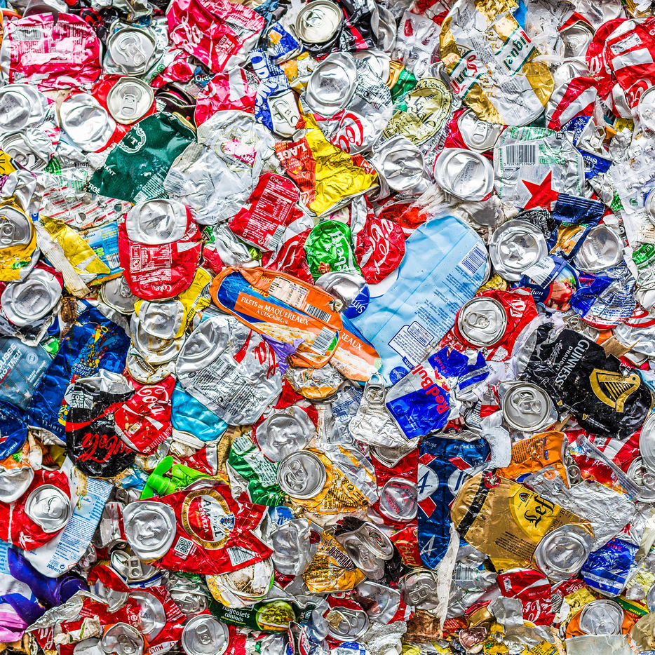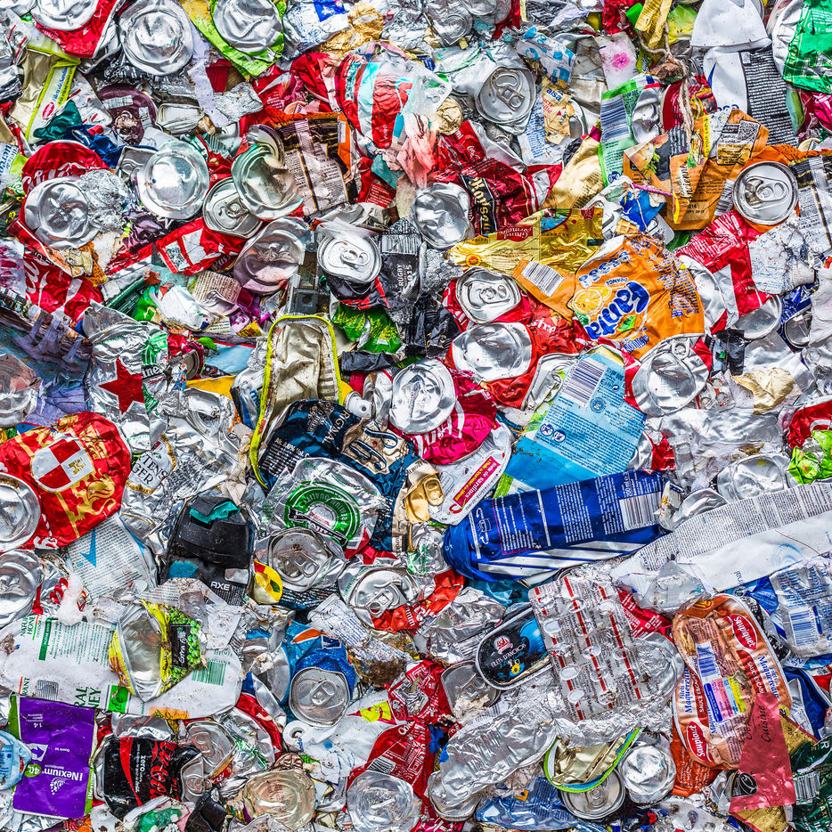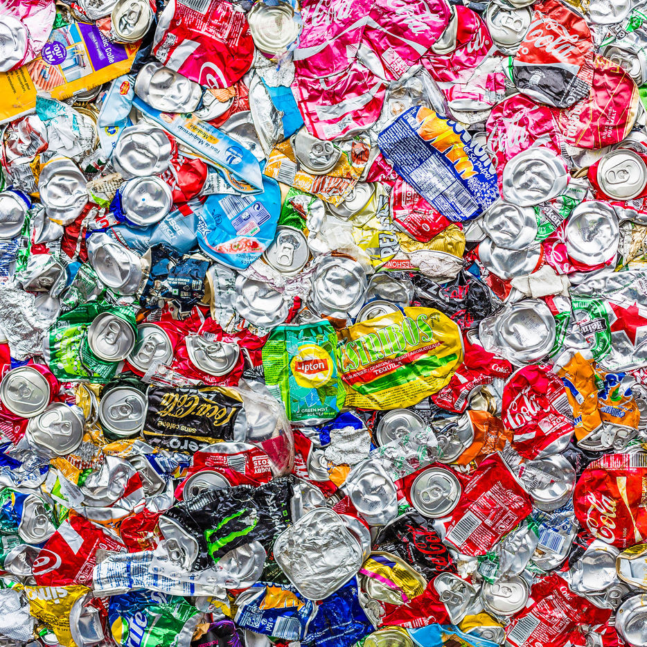 Interrogation sur notre vision de l'environnement, de l'écologie, du consumérisme, cette série d'images de balles d'aluminium compactées issues du centre de tri de l'ARC IRIS, complexe du SYDETOM66, à Calce, nous montre ce que nous produisons le plus au quotidien : des déchets.
